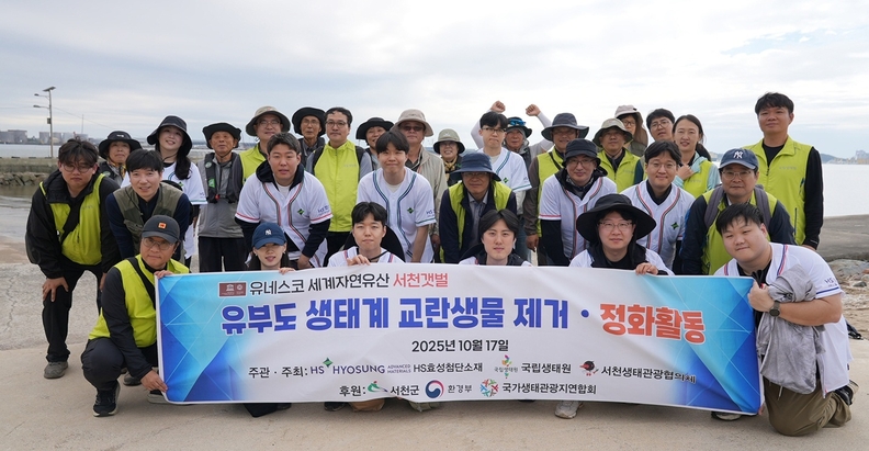 [서울타임즈뉴스 = 최남주 기자] HS효성첨단소재가 세계적인 철새도래지 충남 서천군 유부도에서 3년째 생물다양성 보전 활동을 이어가고 있다. 17일, HS효성첨단소재 임직원과 국립생태원, 서천군 생태관광협의체, 지역주민 등 50여 명이 유부도 일대에서 생태계 교란 식물 제거와 해양 쓰레기 수거 등 환경정화 활동을 펼쳤다.