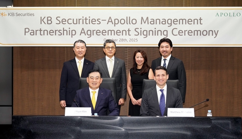 [서울타임즈뉴스 = 최남주 기자] KB증권(대표이사 김성현, 이홍구)은 28일 글로벌 대체투자 운용사 아폴로글로벌매니지먼트(이하 ‘아폴로’)와 글로벌 사모대출 분야에서 전략적 파트너십을 강화하기 위한 업무협약(MOU)을 체결했다고 30일 밝혔다.