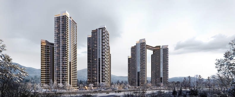 현대건설은 세계적 건축명가 유엔스튜디오와 협업해 부산의 자연환경과 도시 이미지를 유기적으로 결합한 랜드마크 디자인을 선보였다. 물결이 능선을 따라 흐르는 듯한 입면으로 자연과 도시의 조화를 형상화하고, 유려한 곡선미와 입체적 조형미를 통해 예술적 아름다움을 더했다.