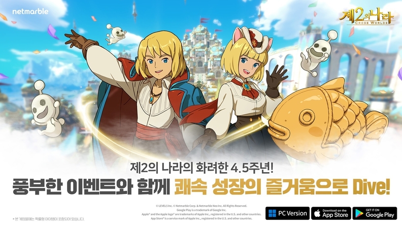 [서울타임즈뉴스 = 최태호 기자] 넷마블은 18일 감성 모험 RPG 제2의 나라: Cross Worlds가 출시 4.5주년을 맞아 기념 이벤트와 콘텐츠 업데이트를 실시했다고 21일 밝혔다. 이번 업데이트의 핵심은 다양한 보상을 제공하는 참여형 이벤트다.
