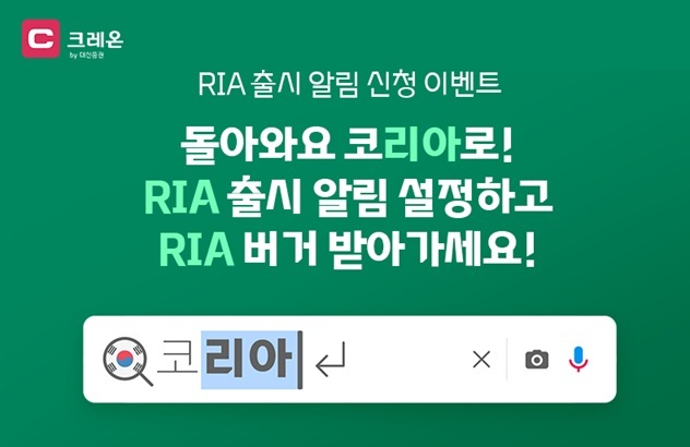 [서울타임즈뉴스 = 최남주 기자] 대신증권은 국내시장 복귀 계좌(RIA) 출시를 앞두고 사전 알림 신청 이벤트를 진행한다고 13일 밝혔다. 이벤트 참여 고객중 1차 추첨을 통해 6,000명에게 롯데리아 ‘RIA버거’ 기프티콘을 제공한다.