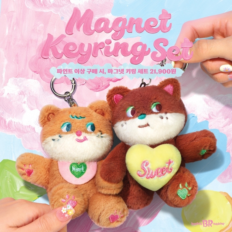 ‘마그넷 키링 세트’ 사전 예약은 20일부터 27일까지 배라앱, 해피오더 앱, 카카오톡 예약하기를 통해 진행된다. 아이스크림 파인트(9,800원) 이상 구매 시 2,000원 혜택이 적용된 19,900원에 만날 수 있으며, 굿즈는 2월 28일부터 3월 2일까지 지정 매장에서 픽업하면 된다. 28일부터는 매장에서 파인트 사이즈 이상 구매 시 21,900원에 구매할 수 있다.
