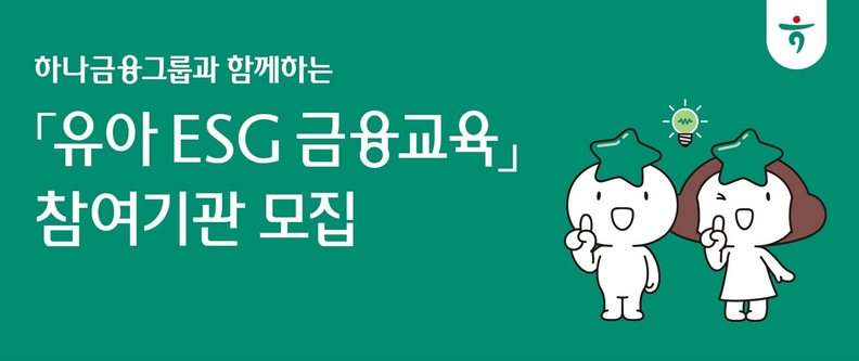[서울타임즈뉴스 = 최남주 기자] 하나금융그룹이 오는 3월 13일까지 ‘하나금융그룹 100호 어린이집’을 대상으로 소프트웨어(SW) 및 금융 교육을 제공하는 ‘유아 ESG 금융 교육’ 참여 기관을 모집한다고 24일 밝혔다.