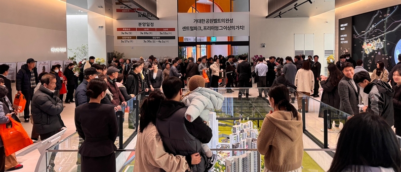 견본주택 현장에서는 방문객들이 내부 평면과 수납 특화 설계, 공간 활용도 등을 꼼꼼히 살펴봤다. 상담석도 분양 상담을 받으려는 예비청약자들로 붐볐다. ‘경산 상방공원 호반써밋’은 경산 첫 민간공원 특례사업인 상방공원과 함께 조성되는 총 2105세대(1·2단지) 공동주택이다.