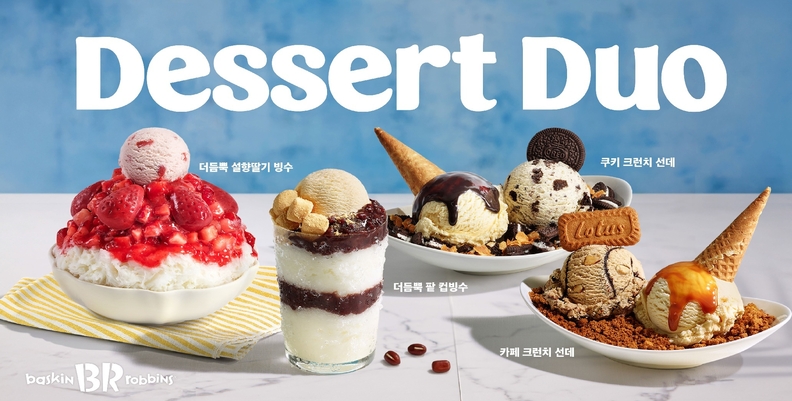 ‘더 듬뿍 팥빙수’는 기본에 충실한 오리지널 팥빙수를 재해석한 제품으로, 부드러운 우유 얼음 베이스에 고운 팥, 인절미 떡, 콩고물 등 재료를 담아냈다. 원하는 아이스크림을 추가 할수 있으며, 컵빙수 형태도 함께 출시됐다. ‘카페 크런치 선데’는 자모카 아몬드 훠지, 부드러운 바닐라 플레이버 위에 카라멜 소스와 크럼블을 토핑으로 담았다. ‘아포가토’는 따뜻한 에스프레소를 아이스크림에 부어 먹는 방식이다.