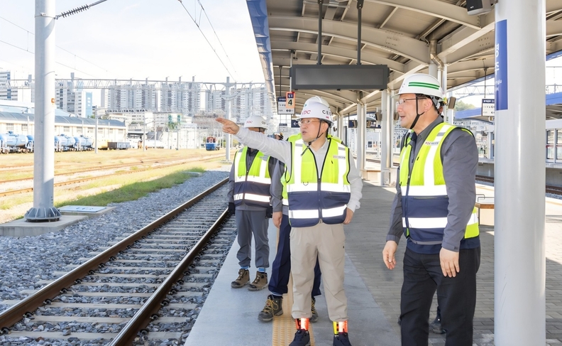 [서울타임즈뉴스 = 서연옥 기자] HDC현대산업개발은 26일, 경상북도 영주시 도담–영천 복선전철 4공구 현장에서 정경구 대표이사가 직접 주관하는 현장 안전 점검을 실시했다고 29일 밝혔다. 이번 현장은 열차가 상시 운행되는 구간과 인접해 있어 철저한 안전 확보와 체계적인 관리가 필수적인 곳이다.