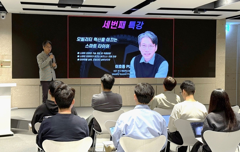 지난 22일 열린 마지막 강연에서는 이호종 한국타이어테크놀로지㈜ 모빌리티 솔루션 프로젝트 리더가 ‘모빌리티 혁신을 이끄는 스마트 타이어’를 주제로 강연했다. 이호종 리더는 △스마트 타이어 기술 △스마트 타이어 비즈니스 모델 △모빌리티 솔루션으로서의 활용 가능성 등 세 가지 축을 중심으로 실제 현업에 적용 가능한 인사이트를 공유했다.