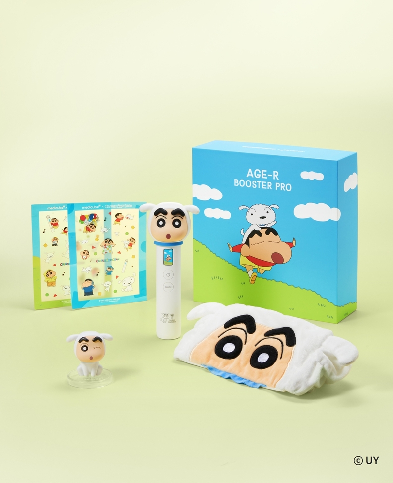 메디큐브 에이지알의 ‘부스터 프로’와 ‘부스터 프로 미니 플러스’ 역시 짱구 캐릭터 디자인을 적용한 특별 한정판으로 새롭게 출시된다. ‘부스터 프로’의 헤드케이스와 본체, 패키지 전반에 짱구 일러스트를 입혀 유쾌한 감성을 더했으며, 구매 시 짱구 스티커 2종, 흰둥이 옷을 입은 짱구 피규어, 짱구 세안 밴드로 구성된 특별 구성이 함께 제공된다.
