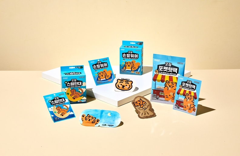 이번 협업은 굿잠의 첫 캐릭터 콜라보레이션으로 대표 제품인 ‘굿잠 스팀안대’, ‘굿잠 손발워머’, 그리고 신제품 ‘굿잠 포켓핫팩’에 엉뚱하고 사랑스러운 호랑이 '뚱랑이' 캐릭터 디자인을 입혔다. 새롭게 선보인 ‘굿잠 포켓핫팩’은 뚱랑이가 붕어빵 이불을 덮고 있는 것 같은 재미있고 독특한 디자인이다.