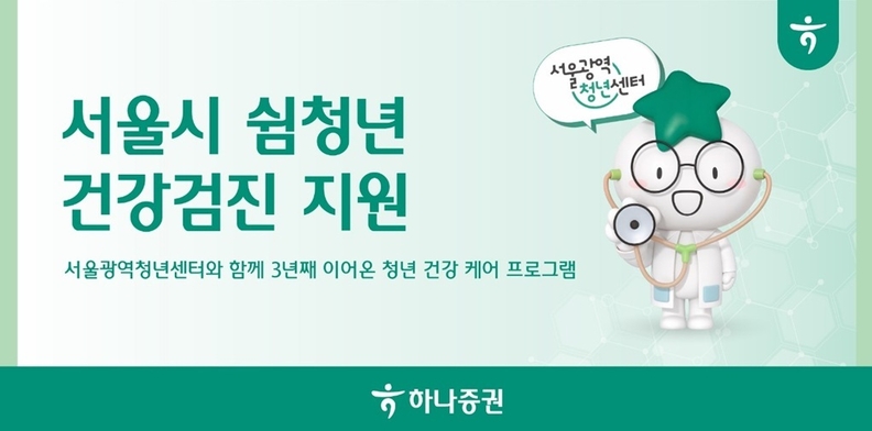 하나증권 갈상면 ESG본부장은 “하나증권이 3년째 이어오고 있는 쉼청년 건강검진 지원사업은 단순한 의료 지원을 넘어, 청년들의 건강 관리를 통해 일자리와 자산 형성을 두루 도울 수 있는 재도약의 출발점이 되고 있다”며 “앞으로도 도움이 필요한 곳을 찾아 진정성 있는 사회공헌을 꾸준히 이어갈 것”이라고 전했다.