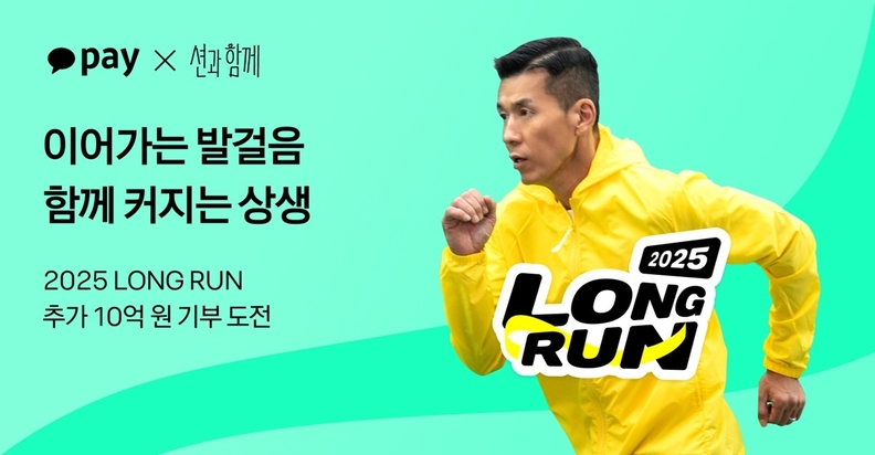 [서울타임즈뉴스 = 최남주 기자] 카카오페이(대표 신원근)가 가수 션의 유튜브 채널 ‘션과 함께’와 함께 진행중인 온·오프라인 연계 기부 마라톤 캠페인 ‘2025 LONG RUN’이 폭발적인 참여 열기 속에 새로운 상생 계획을 내놓았다. 카카오페이는 20일 오는 30일까지 누적 200억 걸음을 달성할 경우 기존 기부액에 10억원을 추가로 더하겠다고 발표했다.