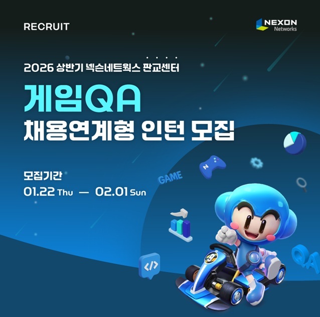[서울타임즈뉴스 = 최명진 기자] 넥슨네트웍스(대표 박웅석)가 2026년 상반기 채용연계형 인턴을 공개 모집한다고 밝혔다. 이번 채용은 게임 QA 직군을 대상으로 진행된다. 이번 채용은 나이·전공·경력 제한 없이 누구나 지원할 수 있다. 지원서 접수는 22일부터 오는 2월 1일 24시까지 넥슨네트웍스 채용 사이트를 통해 이뤄진다.
