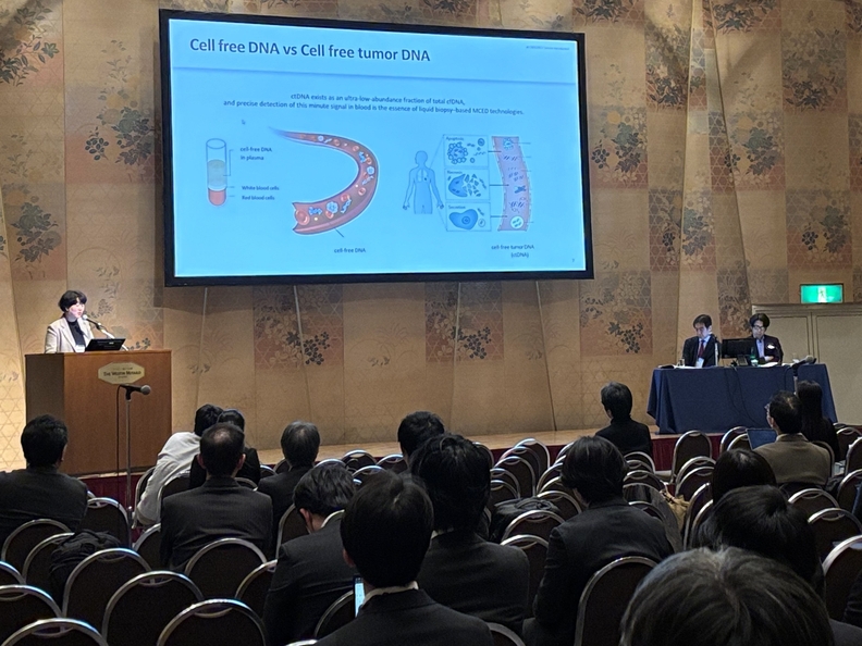 해당 학회는 액체생검 분야 최신 연구 성과를 공유하는 일본 내 대표 학술 행사로, 의료인 약 500명이 참석했다. GC지놈은 ‘cfDNA 전장 유전체 분석을 이용한 인공지능 다중암 조기 스크리닝 검사(ai-CANCERCH)의 외부 코호트를 이용한 성능 검증’을 주제로 구연 발표를 진행했으며, 발표는 조은해 연구소장이 맡았다.