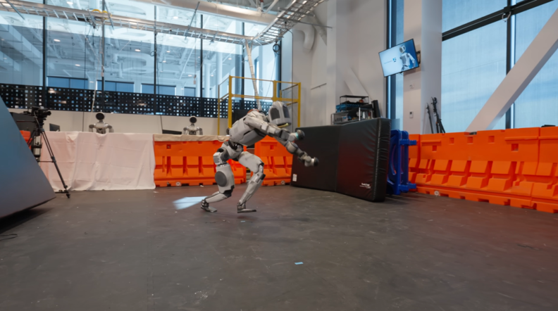 아틀라스는 과거에도 옆돌기와 백 텀블링을 각각 시연한 바 있으나, 이번에는 도약부터 공중 자세 제어, 착지 충격 흡수, 자세 회복까지 전 과정을 연속적으로 수행했다는 점에서 의미가 크다. 이는 고난도 동작 자체보다 ‘연속 전신 제어(Whole-body control)’ 능력이 안정화 단계에 진입했음을 보여주는 장면으로 평가된다.