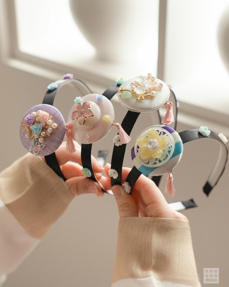 명절의 설렘을 더해줄 전통 액세서리도 다채롭다. 파스텔톤 자수와 태슬 장식이 어우러진 ‘나비 태슬 장식’은 한복은 물론 가방 장식으로도 활용 가능하다. ‘전통꽃 머리띠’와 ‘가체 머리띠’는 간편하게 착용해 전통미를 살릴 수 있어 가족 모임이나 명절 사진 촬영에 제격이다.