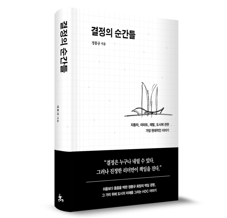 [서울타임즈뉴스 = 서연옥 기자] HDC그룹이 창립 50주년을 맞아 정몽규 회장이 저술한 사사 '결정의 순간들'을 출간한다. 이 책은 현대가 창업 세대의 도전과 글로벌 협상, 독립의 과정, 도시와 인프라를 구축해 온 혁신의 순간들을 정몽규 회장 시점에서 정리한 기록이다. 해방 이후 자동차 산업의 성장과 아파트 중심 주거 문화의 확산 등 한국 산업사의 흐름도 함께 조망했다.