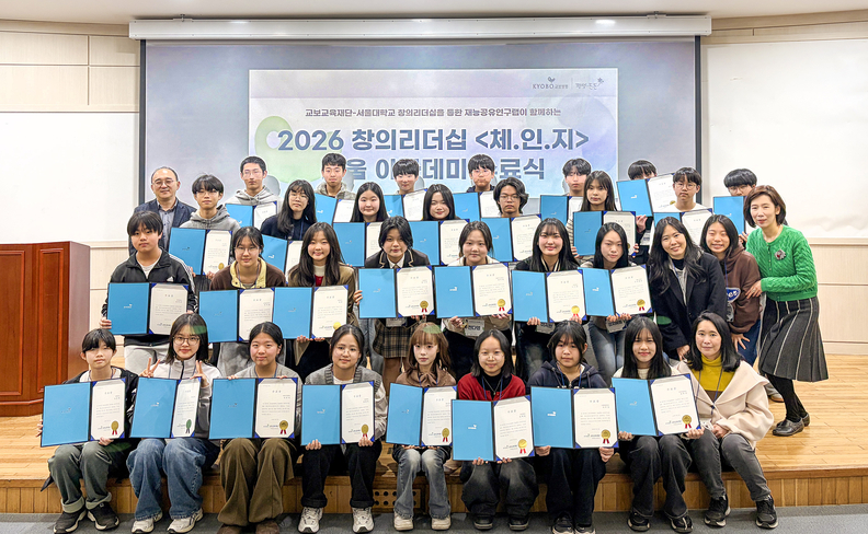 [서울타임즈뉴스 = 최남주 기자] 교보생명의 공익재단인 교보교육재단은 지난 25일 서울 관악구 서울대학교 사범대학에서 ‘2026 창의리더십 '체.인.지' 겨울 아카데미’ 14기 수료식을 개최했다고 26일 밝혔다.