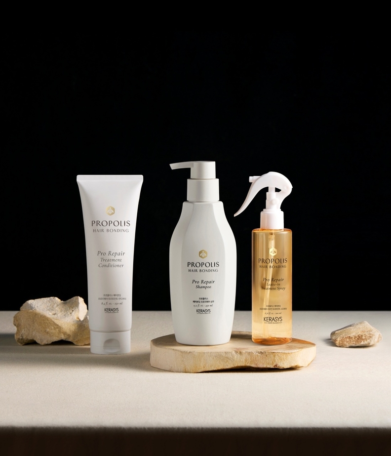 케라시스 프로폴리스 헤어본딩 라인 3종은 △영양 공급과 클렌징이 가능한 ‘프로리페어 샴푸’ △모발을 매끄럽고 부드럽게 관리해 주는 ‘프로리페어 트리트먼트 컨디셔너’ △ 스프레이 타입으로 헹굼 없이 끈적이지 않는 영양을 공급해 주는 ‘프로리페어 리브인 트리트먼트 스프레이’로 구성됐다.