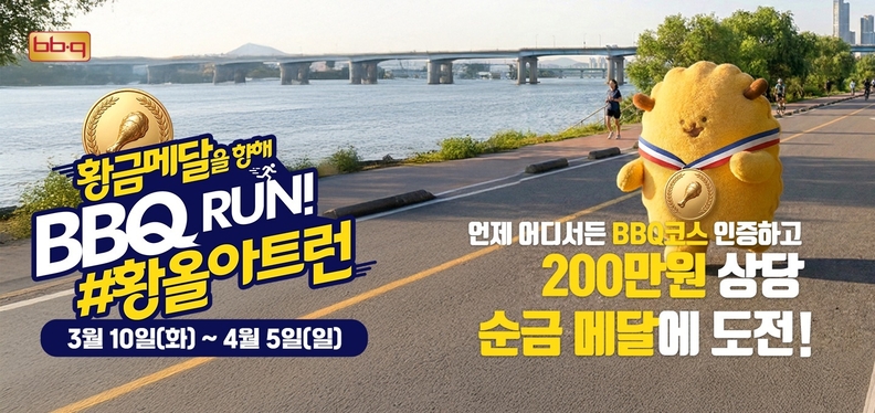 [서울타임즈뉴스 = 서연옥 기자] 제너시스BBQ 그룹이 러닝과 브랜드 체험을 결합한 고객 참여형 캠페인 ‘BBQ 황올 아트런’을 진행한다. 최근 러닝 인구가 빠르게 증가하는 트렌드에 맞춰 기획됐다.