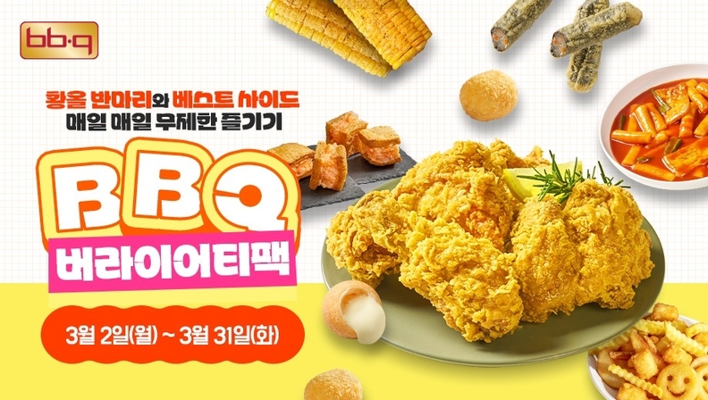 [서울타임즈뉴스 = 서연옥 기자] 제너시스BBQ 그룹(회장 윤홍근)이 3월 새학기를 맞아 오는 31일까지 BBQ앱(자사앱) 및 웹사이트에서 치킨 메뉴를 주문하는 모든 고객에게 'BBQ 버라이어티팩'을 증정한다고 12일 밝혔다.