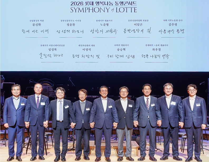 롯데는 지난 27일 서울 롯데콘서트홀에서 ‘2026 롯데 행복나눔 동행콘서트’를 열었다고 밝혔다. 올해로 4회째를 맞은 이번 행사에는 340여 개 파트너사 임직원 1300여 명이 참석했으며, 롯데지주와 롯데백화점, 롯데GRS, 롯데건설 등 12개 계열사 임직원도 함께했다.