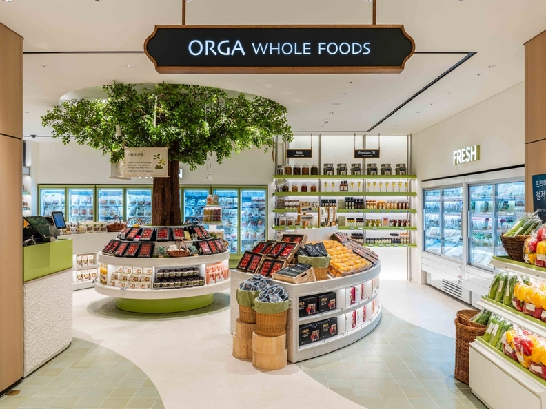 매장 설계는 공간 브랜딩 기업 글로우서울이 맡았다. 롯데백화점 식품부문과 협업해 완성도를 높였다. 중앙에 배치된 나무 오브제를 중심으로 자연스러운 동선을 구성했다. 상품은 원료에서 식탁까지의 흐름에 따라 진열해 브랜드 가치 전달력을 강화했다. 상품 구성도 유기농 유제품·김치 등 냉장식품과 유기농 오일·차, 무항생제 한우와 동물복지 유정란 등으로 재편해 카테고리별 전문성을 높였다.