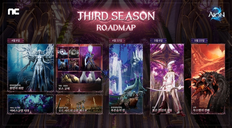 [서울타임즈뉴스 = 최명진 기자] 엔씨소프트의 MMORPG ‘아이온2’가 시즌3 콘텐츠 로드맵을 공개하고 대규모 업데이트에 나섰다. 시즌3는 8일부터 시작되며 ‘환영의 회랑’, ‘푸른숨의 섬’ 등 신규 원정과 ‘붉은 연심의 거울’, ‘무스펠의 성배’ 등 다양한 PvE 던전이 순차적으로 추가된다.