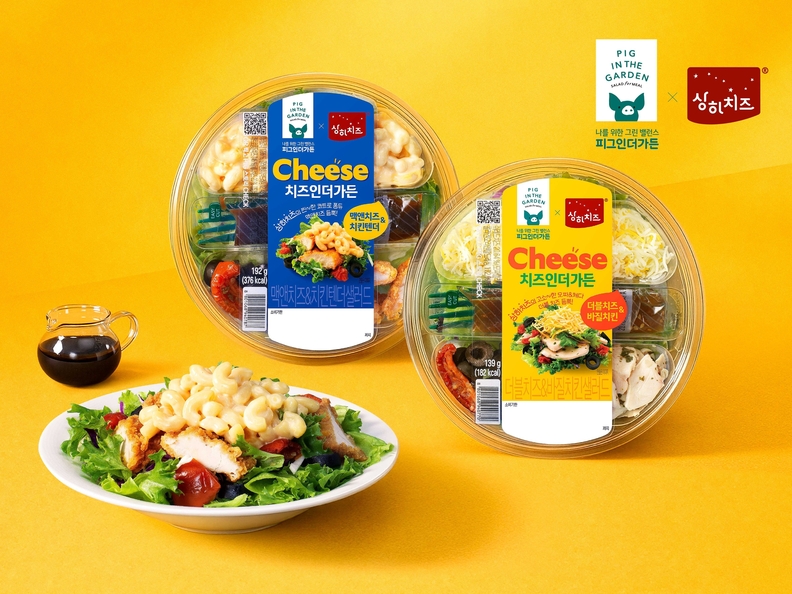 ■삼립·상하치즈 협업…프리미엄 샐러드 ‘치즈인더가든’=삼립의 웰니스 브랜드 ‘피그인더가든’이 매일유업 ‘상하치즈’와 협업해 프리미엄 샐러드 ‘치즈인더가든’을 출시했다. 신선 채소와 다양한 치즈를 결합해 맛과 영양을 동시에 강화한 것이 특징이다. ‘맥앤치즈&치킨텐더 샐러드’는 유럽산 치즈를 활용한 진한 풍미와 매콤한 치킨을 더했고, ‘더블치즈&바질치킨 샐러드’는 고소한 치즈와 향긋한 바질치킨 조합을 강조했다. 블랙올리브와 토마토, 드레싱을 함께 제공해 완성도를 높였다. 편의점 유통을 중심으로 간편식 수요를 공략하며, 양사는 협업을 통해 브랜드 시너지를 확대할 방침이다.