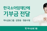 [서울타임즈뉴스 = 최남주 기자] 하나금융그룹은 소아암·희귀암으로 투병중인 아이들의 건강한 미래를 지원하기 위해 ‘HERO 체크카드’를 통해 적립된 기부금을 한국소아암재단에 전달했다고 5일 밝혔다. 이번 기부금은 ‘HERO 체크카드’로 월 5만원 이상 결제 시 1,000원이 적립되는 ‘특별한 기부 이벤트’를 통해 마련됐다. 이번 2차 기부금 1,600만원을 포함해 카드 출시 이후 약 5개월 동안 누적 4,100만원이 하나금융그룹과 광고모델 임영웅, 그리고 팬클럽 ‘영웅시대’의 이름으로 한국소아암재단에 전달됐다. 특히 출시 기념으로 진행된 이번 이벤트는 고객의 일상적인 금융 활동이 기부로 이어지는 참여형 금융 모델이라는 점에서 의미가 크다. 전달된 기부금은 소아암·희귀암 환아들의 치료비 지원과 정서 지원 프로그램 등에 사용될 예정이다. HERO 체크카드는 지난해 9월 출시된 상품으로, 광고모델 임영웅의 초상을 전면에 담은 첫 번째 체크카드다. 멜론·유튜브·넷플릭스 등 구독 서비스 결제 시 10% 적립, 대형마트·슈퍼마켓·백화점 등 쇼핑 결제 시 5% 적립, 통신요금·관리비 등 생활요금 결제 시 5% 적립 등 다양한 혜택을 제공하며 큰 관심을 받아왔다. 하나금융