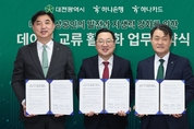 [서울타임즈뉴스 = 최남주 기자] 하나은행(은행장 이호성)과 하나카드(대표 성영수)는 16일 대전광역시와 ‘데이터 교류 활성화를 위한 업무협약’을 체결하고, 지역사회 발전과 소상공인 자생력 강화를 위해 협력하기로 했다고 17일 밝혔다. 이번 협약은 민·관이 보유한 데이터를 연계해 소상공인을 위한 금융정책과 상품을 개발하고, 지역 상권 활성화와 ESG 행정 등 주요 현안에 선제적으로 대응하기 위해 마련됐다. 하나은행과 하나카드는 지역 상권 현황, 소상공인 금융거래 동향, 소비 트렌드, 외국인 손님 분석 등 다양한 금융 데이터를 대전시에 제공할 계획이다. 대전시는 이를 기반으로 지역경제 활성화, 관광정책 수립, 지역화폐 분석 등 보다 정밀한 소상공인 지원 정책을 추진할 예정이다. 대전시청에서 열린 협약식에는 성영수 하나카드 대표와 이동열 하나은행 충청영업그룹 부행장이 참석해 침체된 지역경제 극복과 균형 성장의 필요성에 공감했다. 참석자들은 데이터 활용을 통한 정책 수립뿐 아니라 지역화폐, 정책금융, 지역 축제·행사에 대한 정책 효과 분석에서도 협력하기로 뜻을 모았다. 특히 하나은행과 하나카드가 보유한 소상공인 업종·규모별 분석, 세대별 소비 특성, 외국인 손님