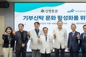 [서울타임즈뉴스 = 최남주 기자] 신영증권은 14일 중앙대학교의료원과 기부 문화 확산을 위한 업무협약을 체결했다고 15일 밝혔다. 이번 협약은 신영증권과 중앙대학교의료원이 기부 신탁을 포함한 다양한 교류와 협력을 통해 기부 문화 활성화는 물론, 지속 가능한 사회적 가치 창출을 도모하기 위한 전략적 파트너십의 일환으로 마련되었다. 유산기부신탁은 기부자와 신탁회사가 기부를 목적으로 체결하는 계약이다. 계약이 체결되면 기부자의 재산은 신탁회사 명의로 이전되고, 사후 기부단체에 이전 기부된다. 생전 직접 재산을 관리할 수 있을뿐 아니라, 희망 시 사후에도 신탁회사를 통해 자산을 관리받고 운용하며 기부를 지속할 수 있다. 이에 신탁은 개인과 가족의 자산 관리와 사회적 기여를 동시에 실현할 수 있는 효과적인 수단으로 평가받고 있다. 신영증권은 그동안 금융 솔루션과 사회적 기여를 연계하는 다양한 모델을 개발했다. 양 기관은 이번 협약을 통해 ▲기부신탁 활성화 ▲기부 상담 및 컨설팅 제공 ▲기부 활성화를 위한 캠페인 및 교육 프로그램 진행 등 다양한 영역에서 협업을 진행하기로 했다. 중앙대학교 의료원은 그동안 기부자의 뜻이 교육·연구·진료 등 공익적 가치에 기부금이 의미