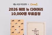 [서울타임즈뉴스 = 최남주 기자] KB국민은행(은행장 이환주)은 연말을 맞아 카멜커피와 협업해 제작한 한정판 다이어리 굿즈를 제공하는 ‘KB국민은행 with 카멜커피’ 이벤트를 진행한다. 이번 이벤트는 오는 21일까지 진행되며, KB스타뱅킹에서 킹미션 1개 또는 일반 미션 5개 중 3개를 완료하고 응모를 마친 고객중 1만명을 추첨해 경품을 제공한다. 경품은 KB국민은행과 카멜커피가 협업해 제작한 한정판 다이어리 키트로 만년형 다이어리, 떡메모지, 볼펜 등으로 구성돼 있다. 먼저, 킹미션은 KB스타뱅킹에서 ▲모바일 신분증 등록 후 이벤트에 응모하면 된다. 일반미션은 ▲패밀리뱅킹 이용 ▲혜택정보 안내 동의(문자) ▲숨은 잔돈 모으기 ▲간편 송금 ▲내게 맞는 대출 찾기로 5개의 미션 중 3개를 달성하고 응모하면 된다. KB국민은행 관계자는 “이번 이벤트는 다가오는 붉은 말의 해를 맞아 카멜커피와 함께 특별한 연말 분위기를 전하고자 마련된 것”이라며, “앞으로도 트렌디한 브랜드와의 협업으로 KB국민은행만의 감성 있는 경험을 제공하겠다”고 말했다.