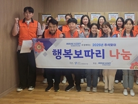 [서울타임즈뉴스 = 최남주 기자] 미래에셋생명은 추석을 맞아 마포구 저소득층 어르신 80여 명에게 명절 선물세트를 전달하는 봉사활동을 25일 진행했다고 26일 밝혔다. 미래에셋생명 임직원 봉사자들은 ‘추석맞이 ‘행복보따리 나눔’이라는 슬로건으로 진행된 이 날 봉사에서 어르신들의 자택을 방문해 밀키트, 과일, 약과 및 조미김 등이 포함된 명절 선물세트를 전달하고 추석 덕담을 주고 받으며 즐거운 한가위를 기원하는 마음을 전했다. 황병욱 미래에셋생명 홍보실장은 “추석을 맞아 어르신들이 따뜻한 시간을 보냈으면 하는 마음에 이번 봉사활동을 진행하게 되었다”며 “앞으로도 미래에셋생명은 사회적 책임을 인식하고 실천한다는 기업 핵심가치에 따라 적극적인 사회공헌 활동으로 보험업의 본질인 사랑을 전하도록 노력하겠다”고 전했다. 미래에셋생명은 미래에셋박현주재단과 연계해 ‘배려가 있는 따뜻한 자본주의의 실천’이라는 구호 아래 사회공헌 활동에 앞장서고 있다. 시각장애인을 위한 점자연습장 만들기, 이른둥이의 안전한 성장을 위한 전용 목베개 및 턱받이 키드 제작 등 다양한 사회공헌 활동을 진행한다.