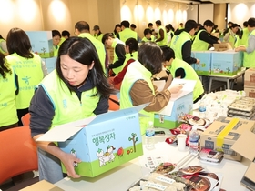그룹 임직원 및 가족 100여 명 참여, 독거 어르신 위한 행복상자 130개 전달