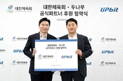 [서울타임즈뉴스 = 최남주 기자] 디지털자산 거래소 업비트를 운영하는 두나무(대표 오경석)는 지난 15일 대한체육회(회장 유승민)와 공식 파트너 후원 협약식을 개최했다고 16일 밝혔다. 후원 협약식은 지난 15일 대한체육회에서 열렸으며, 오경석 두나무 대표와 유승민 대한체육회장을 비롯한 양측 관계자들이 참석했다. 업비트와 대한체육회는 이번 협약을 계기로 국가대표 선수단 지원을 넘어 대한민국 스포츠의 지속 가능한 발전을 위한 협력을 본격화한다. 양측은 2026년 2월 개최 예정인 밀라노 코르티나 동계올림픽을 맞아 팀코리아 선수단 응원 영상을 제작할 계획이다. 아울러 꿈나무 선수 육성 지원과 스포츠 저변 확대 등 다양한 협력 방안도 함께 모색한다. 업비트는 대한체육회의 공식 파트너로서 ▲대한체육회 휘장 및 공식 후원사 명칭 사용 ▲팀코리아 엠블럼 ▲국가대표 선수단 집합적 초상권 등 다양한 지식재산권을 활용해 마케팅을 진행할 예정이다. 오경석 두나무 대표는 “도전하며 세계로 나아가고자 하는 업비트의 여정은 국가대표 선수들의 끊임없는 도전과 맞닿아 있다”며 “앞으로도 선수단의 도전에 함께하며 국민에게 긍정적인 에너지와 신뢰를 전하겠다”고 말했다. 유승민 대한체육회장