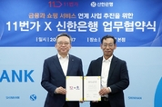 [서울타임즈뉴스 = 최남주 기자] 신한은행(은행장 정상혁)은 17일 서울시 중구 소재 신한은행 본점에서 11번가와 금융·커머스 연계 사업을 위한 전략적 업무협약을 체결했다고 18일 밝혔다. 이번 협약으로 양사는 ▲11번가 특화 금융상품 개발 ▲온·오프라인 공동 마케팅 추진 ▲간편결제 서비스 11페이 사업 확대 등 다양한 분야에서 협력하기로 했다. 특히 신한은행은 11번가 플랫폼에 계좌 기반 간편결제서비스 확대 및 제휴 전용 통장 등 금융상품 및 특화서비스를 제공한다. 이와 함께 양사의 플랫폼을 활용한 11번가 전용 적금 등 공동 마케팅도 추진할 예정이다. 신한은행은 관계자는 “이번 협약으로 신한은행과 11번가의 역량을 결합해 고객에게 혁신적이고 차별화된 경험을 제공할 수 있을 것이다”며 “생활 밀착형 쇼핑 플랫폼과 연계해 일상 속에서 금융을 쉽게 만날 수 있도록 사업을 확대해 나가겠다”고 말했다.