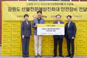 [서울타임즈뉴스 = 최남주 기자] 카카오페이(대표 신원근)는 재단법인 바보의나눔과 한국소방산업협회와 함께 강원도 산불전문예방진화대에 제공할 안전장비 키트 전달식을 진행했다고 18일 밝혔다. 이날 전달식에는 카카오페이 이윤근 ESG협의체장과 바보의나눔 이윤나 사업총괄부장, 강원특별자치도산불방지센터 전욱찬 예방대책실장, 한국소방산업협회 김영정 본부장 등이 참석했다. 이번 안전장비 지원은 카카오페이가 지난 5월 ‘세계 소방관의 날’을 맞아 진행된 ‘산불전문예방진화대 응원 캠페인’을 통해 마련된 기금으로 이루어졌다. 카카오페이는 대형 산불 현장에서 헌신한 진화대원을 응원하기 위해 카카오 사회공헌 플랫폼 카카오같이가치에 모금함을 열어 1억 원을 기부하고, 1천여만 원의 시민 참여가 더해져 총 1억 1천여만 원의 기금을 조성했다. 조성된 기금은 산불 현장의 목소리를 반영하여 진화대원의 안전과 직결되는 필수 장비 4종으로 구성된 안전장비 키트 제작에 사용됐다. 키트는 ▲NFPA(미국 화재예방협회) 인증 산불 진화용 헬멧 ▲방화두건 ▲보호 고글 ▲산불 진압용 방염장갑 등 현장 수요조사를 통해 가장 필요성이 높은 물품들로 구성됐다. 전달된 안전장비 키트 210세트는 오는 1