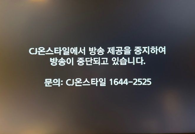 5일 관련업계에 따르면 CJ온스타일은 이날 0시부를 기해 딜라이브와 CCS충북방송, 아름방송 등 3개 케이블TV 사업자에 방송 송출을 중단했다. 현재 3개 케이블TV사업자의 고객들이 해당 채널을 선택할 경우 ‘CJ온스타일에서 방송 제공을 중지해 방송이 중단되고 있다’는 문구만 나온다.