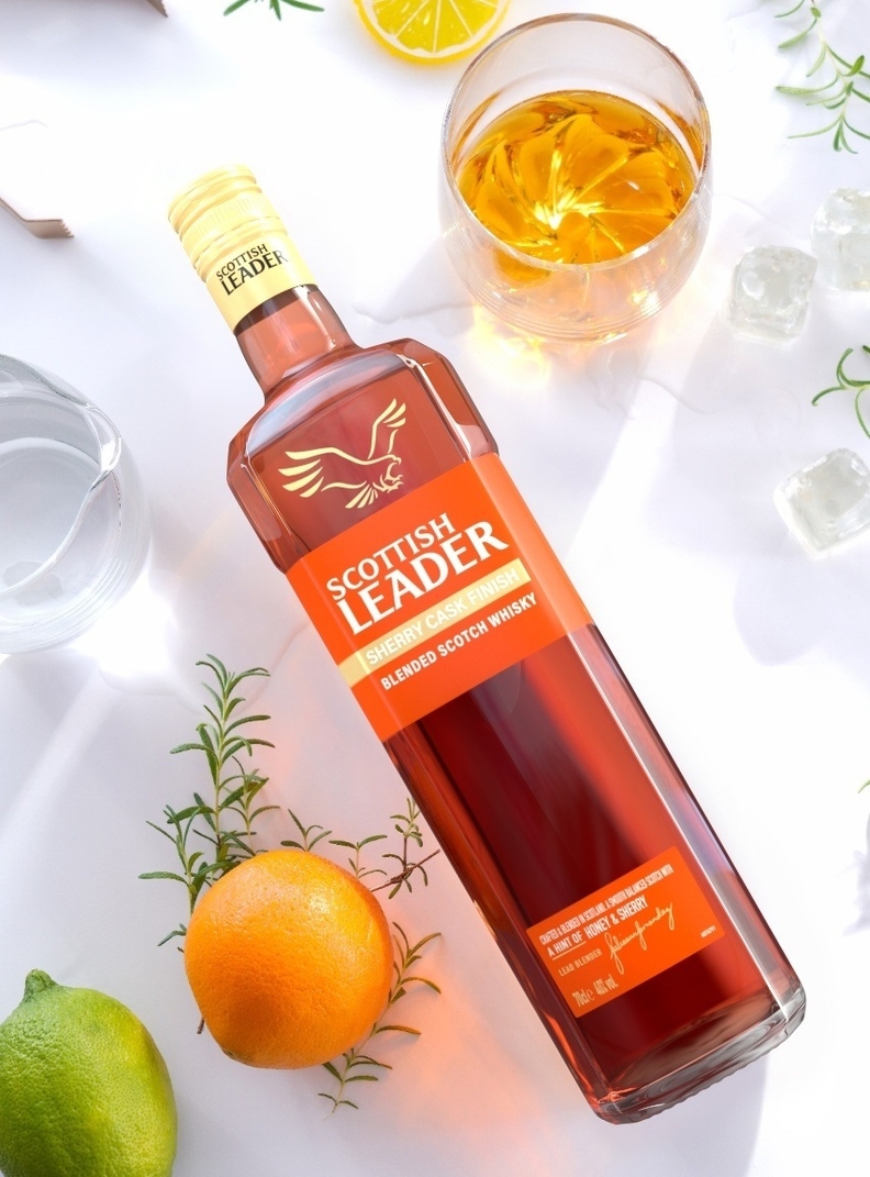 ‘스코티시 리더 셰리 캐스크 피니시’는 최상급 스카치 위스키 원액을 스페인산 셰리 캐스크에서 마무리 숙성한 제품이다. 시나몬과 초콜릿, 코냑과 커피를 연상시키는 달콤한 향과 프루티한 풍미가 특징이다.