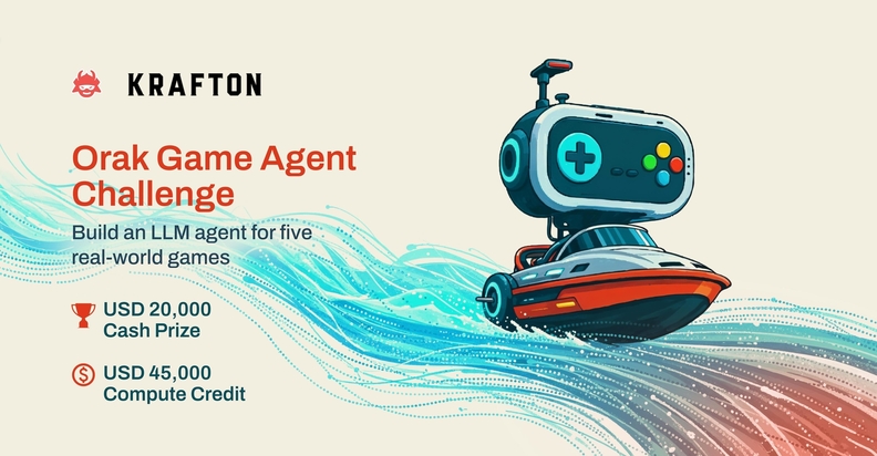 이번 챌린지에는 NVIDIA(엔비디아), AWS(아마존웹서비스), OpenAI가 공식 후원사로 참여한다. 참가팀에게는 대회 기간 동안 LLM 실험에 활용할 수 있는 총 4만5000달러 규모의 크레딧이 제공되며, 최종 우승자에게는 총 2만 달러의 상금이 주어진다. 상위권 팀은 Orak을 개발한 크래프톤 AI 연구진과 에이전틱 LLM 기술 논의 세션에 참여할 수 있는 기회도 얻게 된다. 참가팀은 최대 5명까지 구성 가능하며, 하루 5회 이내로 모델을 제출할 수 있다. 참가 등록은 11월 21일까지이며, 최종 우승자는 2026년 2월에 발표할 예정이다.