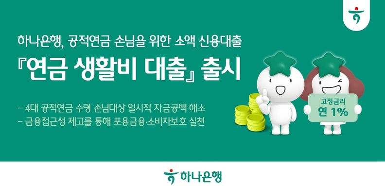 [서울타임즈뉴스 = 최남주 기자] 하나은행은 공적연금을 수령하는 고객의 일시적인 경제적 부담을 덜어주기 위해 연 1.0% 고정금리를 적용한 소액 신용대출 상품 ‘연금 생활비 대출’을 출시했다고 15일 밝혔다.