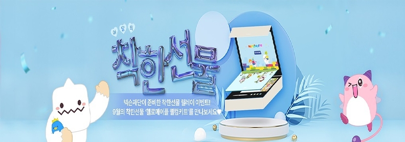 9월 착한선물 릴레이 이벤트에서는 이달 정식 출시된 ‘헬로메이플’과 유저들의 첫 만남을 기념하여 ‘헬로메이플 웰컴키트’를 선물한다. 메이플스토리의 캐릭터를 활용한 웰컴키트는 노트, 마우스 패드, 볼펜, 키캡, 무선 칫솔살균기로 구성돼 있다.