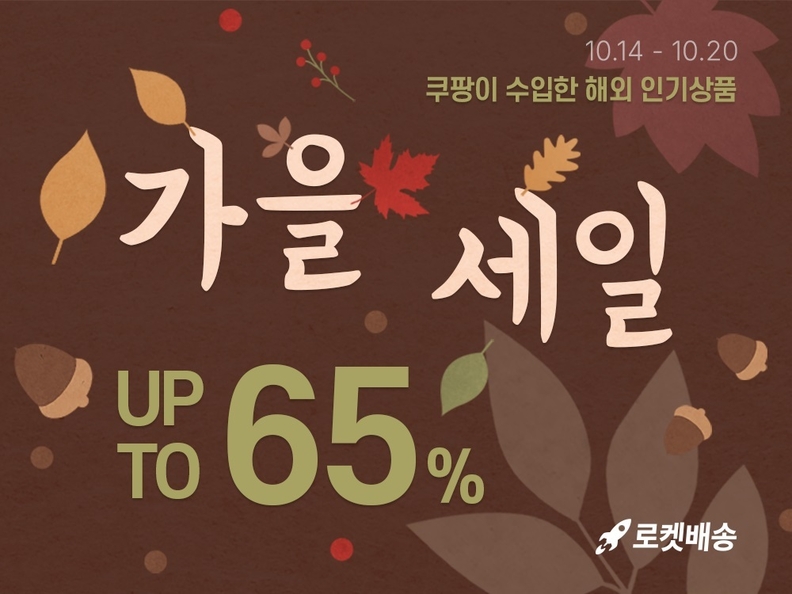 [서울타임즈뉴스 = 서연옥 기자] 쿠팡이 20일까지 '쿠팡수입 가을 맞이 세일' 행사를 진행한다. 이번 행사에서는 쿠팡이 직접 수입한 해외 인기 브랜드의 가전, 홈퍼니싱, 주방용품, 식품 등을 최대 65% 할인된 가격에 선보인다.