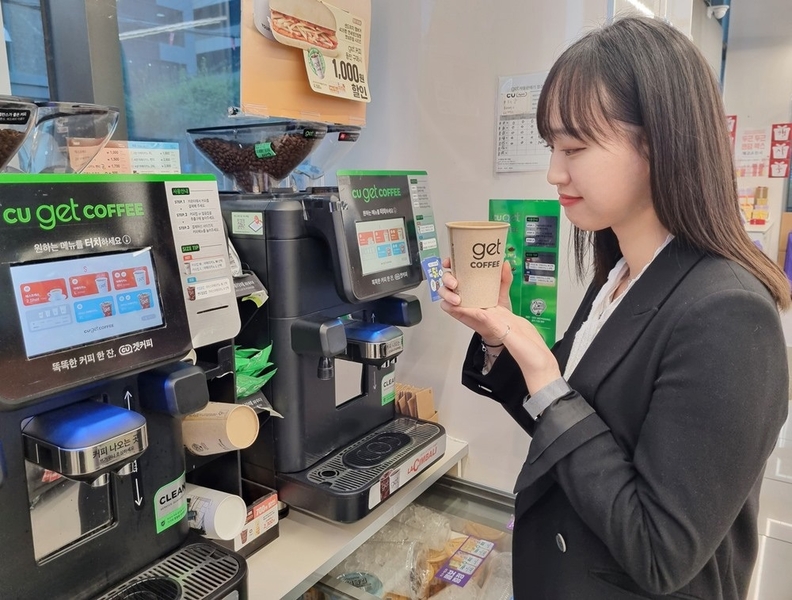 CU의 get 커피는 브라질, 콜롬비아, 니카라과산 원두를 미디엄 로스팅으로 적절히 배합해 은은한 산미와 고소한 맛의 밸런스가 특징이다. 또 전국 1만여 점포에 설치된 이탈리아 라심발리 커피머신의 열 교환 방식 보일러 기술로 일평균 200잔 연속 추출해도 온도와 압력에 변화가 없는 고품질의 맛과 풍미를 균일하게 느낄 수 있다.
