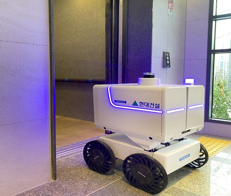 [서울타임즈뉴스 = 최남주 기자] 현대건설이 국내 건설사 최초로 자율주행 로봇 배송 서비스를 상용화하며 로봇 친화형 미래 주거단지 조성에 나선다. 현대건설은 현대자동차그룹 스타트업 ‘모빈’과 공동 개발한 실내외 통합 자율주행 로봇배송 서비스를 오는 6월 준공 예정인 ‘디에이치 대치 에델루이’에 첫 적용하고, D2D(Door to Door) 로봇 배송 서비스의 공동주택 적용을 점차 확대해 나갈 계획이라고 14일 밝혔다.