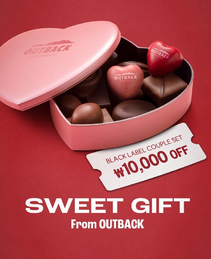 [서울타임즈뉴스 = 서연옥 기자] 아웃백 스테이크하우스(이하 아웃백)가 밸런타인데이를 맞아 소중한 사람들과의 행복한 시간을 더욱 특별하게 만들어줄 “아웃백에서 온 달콤한 선물(Sweet Gift from OUTBACK)” 프로모션을 진행한다.