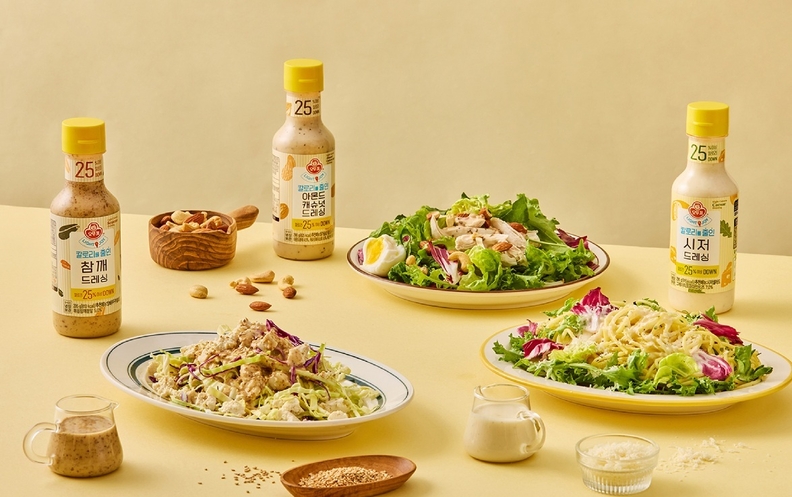 이번 신제품은 유화형 타입으로 ‘참깨 드레싱’, ‘아몬드캐슈넛 드레싱’, ‘시저 드레싱’ 등 총 세 가지 제품이다. ‘참깨 드레싱’은 볶음 참깨의 고소함과 간장의 감칠맛을 구현했으며, ‘아몬드캐슈넛 드레싱’은 견과류의 고소함과 깊은 부드러움을 담았다. ‘시저 드레싱’은 파마산 치즈와 엔초비의 고소한 감칠맛을 느낄 수 있다.