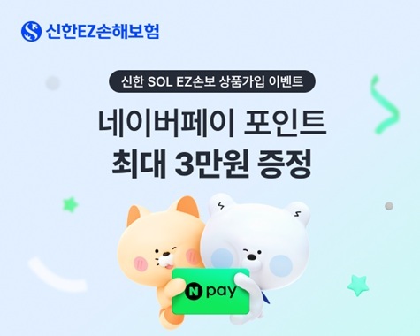 [서울타임즈뉴스 = 최남주 기자] 신한EZ손해보험(사장 강병관)은 1일부터 연말까지 신규 보험가입 고객을 대상으로 네이버페이 포인트를 제공하는 이벤트를 실시한다고 밝혔다.