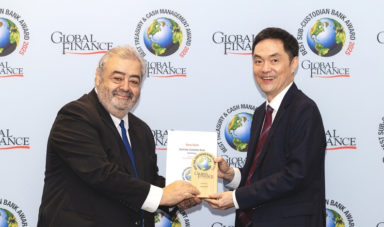 ‘글로벌파이낸스지(誌)’는 지난달 30일 독일 프랑크푸르트에서 개최된 2025 ‘글로벌파이낸스지(誌)’ 금융거래 시상식을 통해 하나은행이 ▲서비스 품질 ▲수수료 경쟁력 ▲시장의 다양한 니즈 충족 능력 ▲손님 만족도 등의 항목에서 높은 평가를 받았다고 선정 사유를 밝혔다.