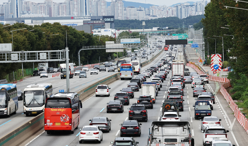 도로공사에 따르면 이날 전국 차량 통행량은 433만 대로 예상됐다. 오후 3시 기준 울산에서 서울까지는 4시간 50분, 부산 4시간 30분, 광주 3시간 30분, 대전 2시간 10분이 소요됐다. 서울 방향 정체는 오후 5시께 절정을 이룬 뒤, 밤 9~10시경 해소될 것으로 전망됐다.